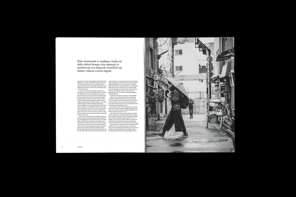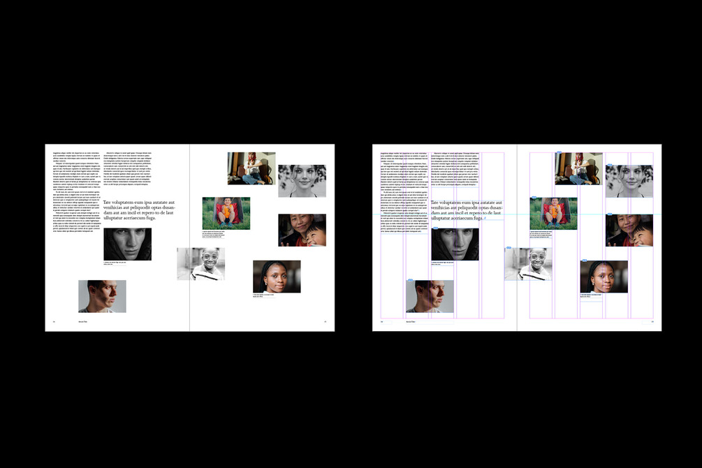 • Design: Aligned to a column grid with a hangline, Master Pages, Paragraph Styles, pagination, footnotes and more. Also contains chapter openers, editor's letter, and masthead page.